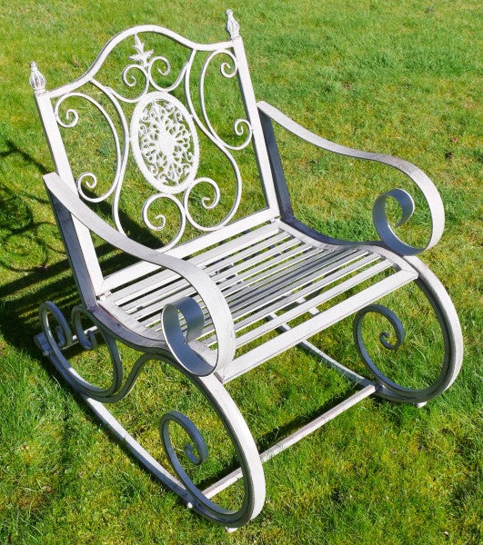 Sold outOutdoor Antique Grey Rocking Chair