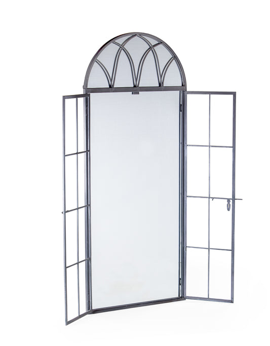 Antiqued Lead Grey Iron Tall Arch Window Metal Mirror