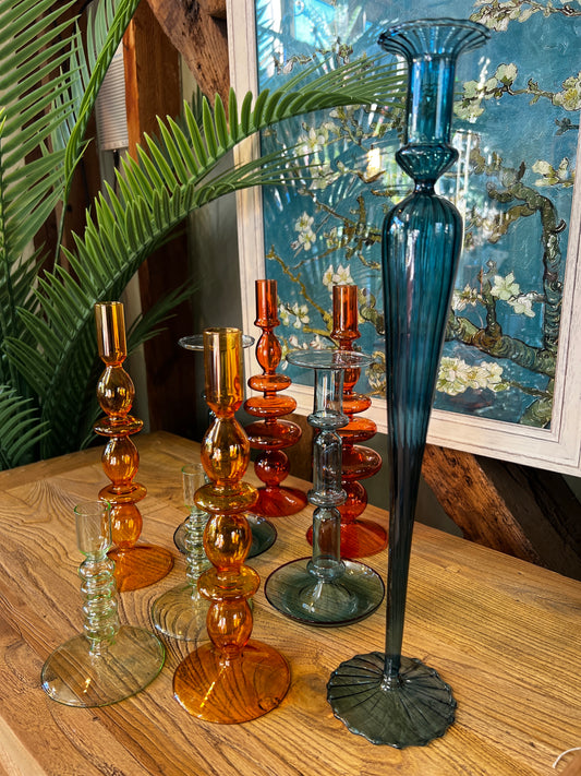 Glass Candle Holder - Tall Blue