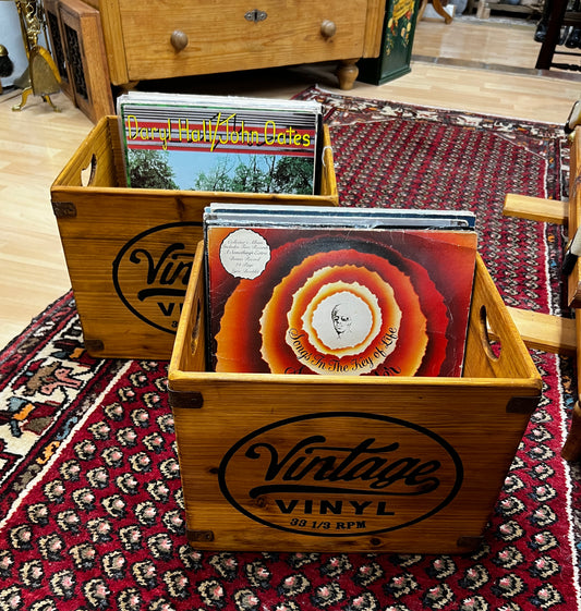 Set of 2 Antiqued Wooden "Vintage Vinyl" LP Record Storage Boxes