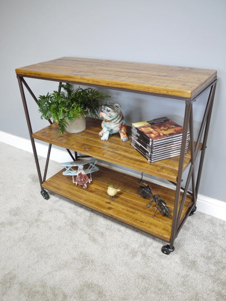 Antiqued Black Tall Cupboard Shelf Unit with Metal Rattan Doors
