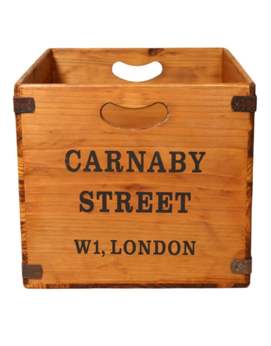 Set of 2 Antiqued Wooden "Carnaby Street" LP Record Storage Boxes