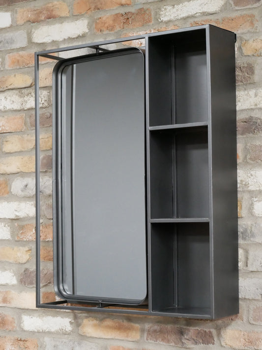 Black and Antique Gold "Orwell" Square Metal Wall Cabinet with Shelf