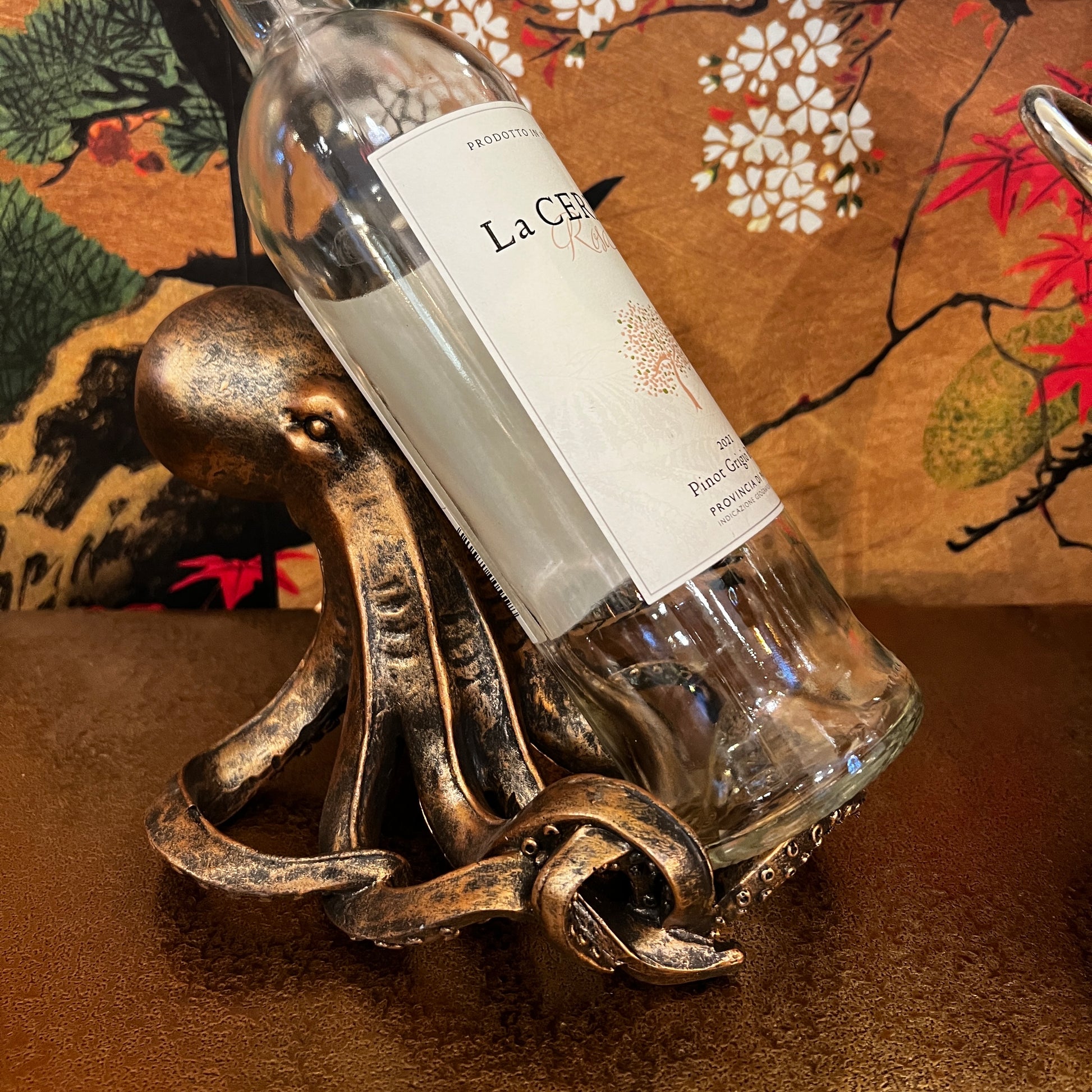 This unique Antique Bronze Octopus Wine Bottle Holder adds a touch of class to any wine-friendly gathering. Crafted from high-quality bronze alloy with smooth antique finishing, this bottle holder is both decorative and resistant to damage. Its eight tentacles ensure your wine bottle stands firmly and with startling simplicity.